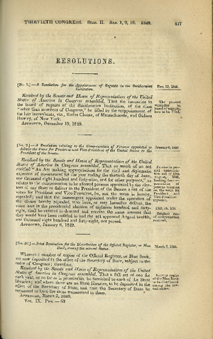 Printed Document, 1 page(s), Public Acts, IX, 30th Cong., 2nd sess., George Minot, Statutes at Large 9, 417 ,