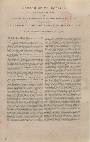 Resolved, That, in the opinion of this General Assembly, supported by the united opinions of the most eminent engineers, the Narragansett bay is susceptible of a complete defence; that, being accessible at all seasons of the year, and with nearly every wind, to