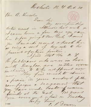 Chester P. Dewey to Abraham Lincoln, 30 October, 18581
