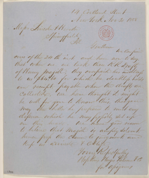 Palmer & Wallace v. Magill, Denton & Co., Martha L. Benner and Cullom Davis et al., eds., The Law Practice of Abraham Lincoln: Complete Documentary Edition, 2d edition (Springfield: Illinois Historic Preservation Agency, 2009), https://lawpracticeofabrahamlincoln.org/Details.aspx?case=137588.