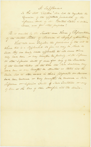 A bill supplementary to the act entitled “An act to regulate the exercise of the appellate jurisdiction of the Supreme Court of the United States in certain cases and for other purposes