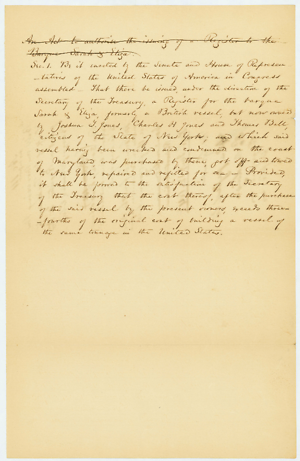 ^A,^ Bill authorizing the Secy. of the Treasury to grant a Register to the Barque; Sarah & Eliza.