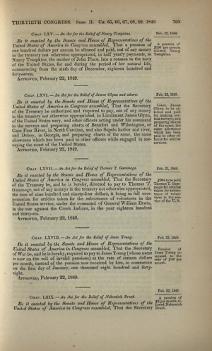 Printed Document, 1 page(s), Private Acts, 30th Cong., 2nd sess., George Minot, Statutes at Large 9, 765