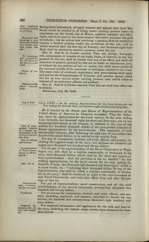 Printed Document, 8 page(s), Public Acts, 30th Cong., 1st sess., George Minot, Statutes at Large 9, 266-73