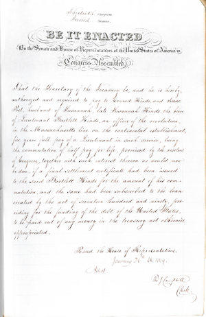 for the relief of the heirs of Lieutenant Bartlett Hinds.