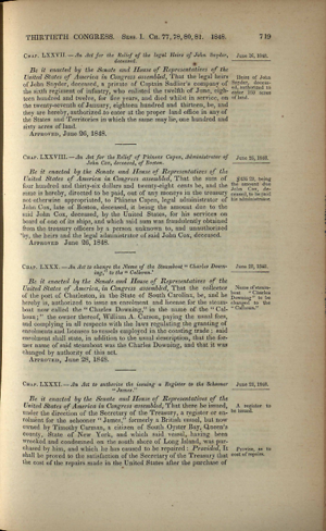 Printed Document, 2 page(s), Private Acts, 30th Cong., 1st sess., George Minot, Statutes at Large 9, 719-20