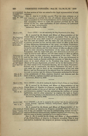 Printed Document, 1 page(s), Public Acts, 30th Cong., 2nd sess., George Minot, Statutes at Large 9, 350