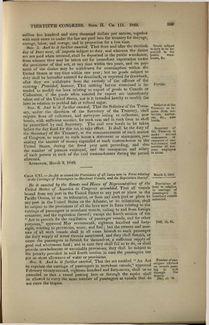 Printed Document, 2 page(s), Public Acts, 30th Cong., 2nd sess., George Minot, Statutes at Large 9, 399-400