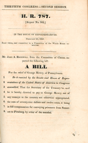 Printed Document, 1 page(s), Box Y543-41, 2, RG 287, Entry 116: Records of the Superintendent of Documents, Publications of the United States Government, Bills and Resolutions, House and Senate, Thirtieth Congress, 1847-1849, NACP , Â