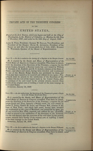 Printed Document, 1 page(s), Private Acts, 30th Cong., 1st sess., George Minot, Statutes at Large 9, 709