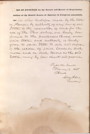 An act confirming former sales by the State of Illinois of the Ohio saline reservations, and authorizing the sale of the residue of such reservations.
