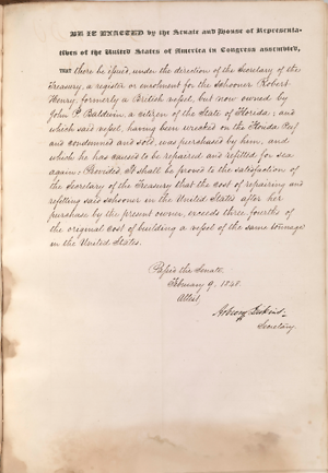 An act to authorize the issuing of a register or enrolment to the schooner Robert Henry.