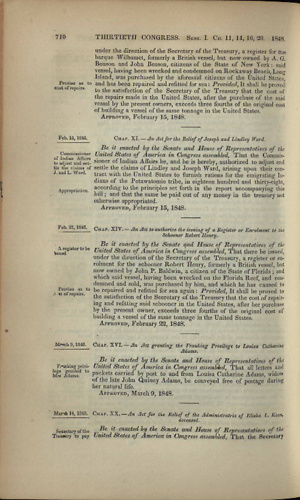 Printed Document, 1 page(s), Private Acts, 30th Cong., 1st sess., George Minot, Statutes at Large 9, 710
