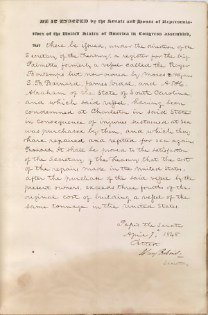 the brig Palmetto, formerly a vessel called the Roger Bontemps but now owned by Moses