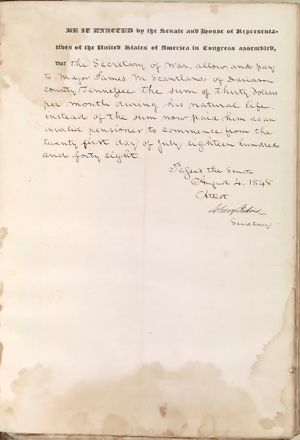 THATthe Secretary of War, allow, and pay to Major James M Scantland of Davidson County