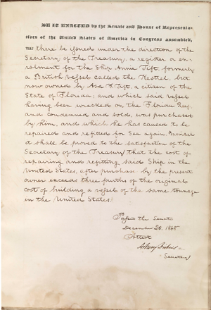 An act to authorise the issuing of a Register or enrolment to the Ship Annie Tift