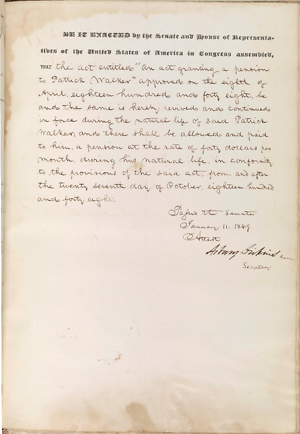 America in Congress assembled, THATthe act entitled “an act granting a pension to Patrick Walker” approved on the eighth