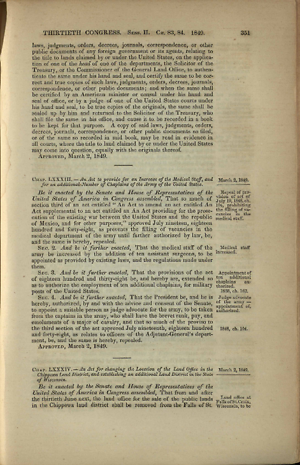 Printed Document, 1 page(s), Public Acts, 30th Cong., 2nd sess., George Minot, Statutes at Large 9, 351