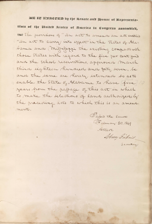 An act to extend the provisions of an act approved the third of March, eighteen hundred and forty seven, for carrying into effect the existing compacts with the States of Alabama and Mississippi, with regard to the five per cent fund and school reservations.