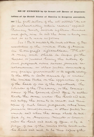 An act to amend an act entitled “An act for authenticating certain records” approved February twenty-second eighteen hundred and forty nine.