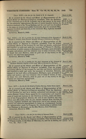 Printed Document, 1 page(s), Private Acts, 30th Cong., 2nd sess., George Minot, Statutes at Large 9, 769