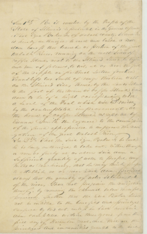Sec.[Section] 1st Be it enacted by the People of the State of Illinois represented in the General Assembly, That Ezra Baker, Jr. of Wabash County, be and he is hereby authorized to erect and build a mill dam across that branch