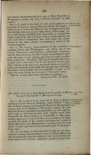 Printed Document, 2 page(s), Laws of the State of Illinois, Passed by the Ninth General Assembly, at their First Session (Vandalia, IL: