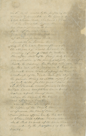Sec[Section]. 1st Be it enacted by the people of the State [of] Illinois Represented in the General A[ssembly] that Simon Reed[,] Roland Thom[as] . . . John Bristol be and they are [?]ted commissioners to view and [?] part of the State Road between [?] . . . Galena which Lies between [?] of Township nine north, and [?] Merediths in Peoria County.