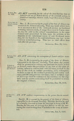 Printed Document, 1 page(s), Laws of the State of Illinois, Passed by the Ninth General Assembly, at their Second Session (Vandalia, IL:
