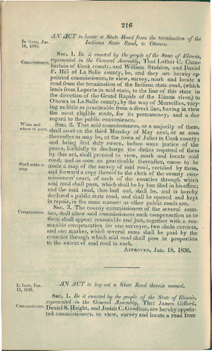 AN ACT to locate a State Road from the termination of the Indiana State Road, to Ottowa.