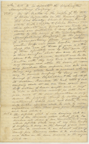 A Bill For an Act to incorporate the WashingtoManufactoring Company.