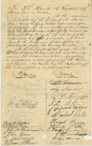 stream during the past season; respectfully solicit your Honorable Body; to cause the contemplated improvement of the navigation of said river to be commenced & completed if practicable, during the coming season.