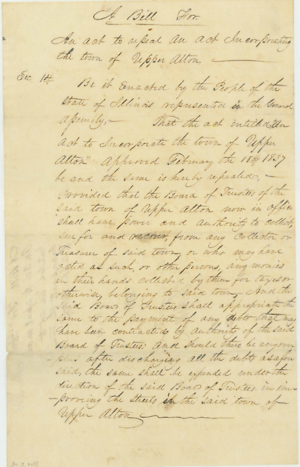 A Bill For An Act to repeal an act Entitled “An Act to Incorporate the town of Upper Alton.”