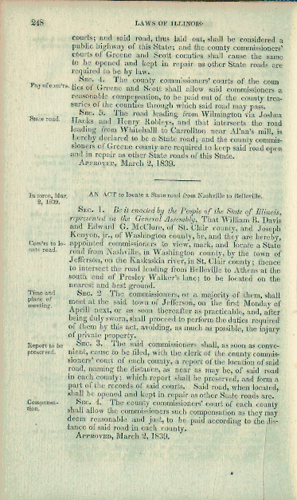 Printed Document, 1 page(s), Laws of the State of Illinois, Passed by the Eleventh General Assembly (Vandalia, IL: William Walters, 1839), 248, GA Session: 11-1,