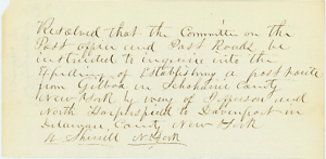 on establishing a Post Route from Gilboa to Davenport in N. Yk.