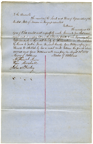 The undersigned Citizens of Ohio would most respectfully make known to you that a new mail route is necessary between