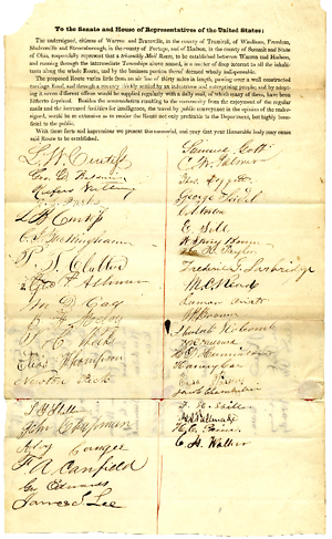 for a tri-weekly mail route from Warren in Trumbull Co.to Husdon in Summit Co.