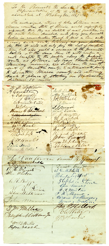 Mr Ficklin of Illinois presented the petition of various citizens of Coles & other Counties of Ills, praying the estabishment of a Mail rout[?] from Charleston via Sullivan to Decatur Macon County.