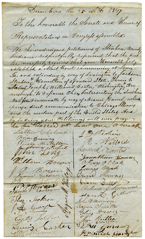 Petition of Luther Cleland, and other ^33^ Citizens of Steuben County Ind, praying the establisment of a Post Rout.
