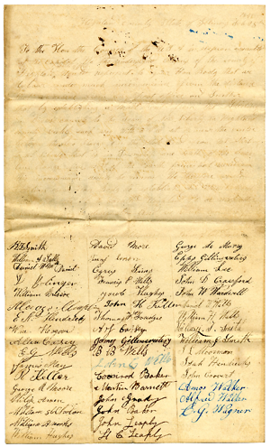 We the undersigned citizens of the county of Highland ^state of Ills^ Would represent to your Hon Body that we labour under much inconveniance from the distance that we reside from any post office and Further that by establishing
