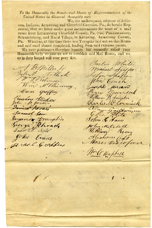 of Penna for a Post Route from Kittonning to Luthersburg.