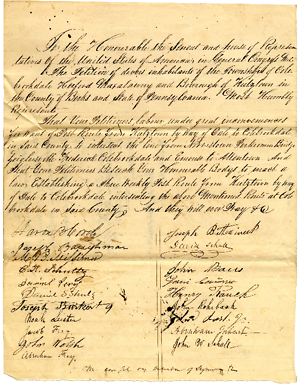 Emouse to Allentown. And That Your Petitioners Beseech Your Honourable Bodys to inact a law Establishing a Thrie Weekly Post Route from Kutztown by way of Dale to Colebrookdale intersecting the