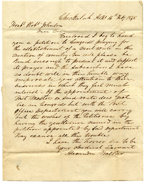 a mail route in this Section of country. You will please be kind eneough to present it and support its prayer and the subscribers I have no doubt will in