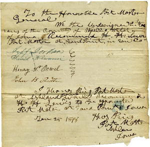 We the Undersigned Citizens of the County of Wapello & state of Iowa [...?] Recommend H. H. Lewis Post Master at Sand Point, in said Co