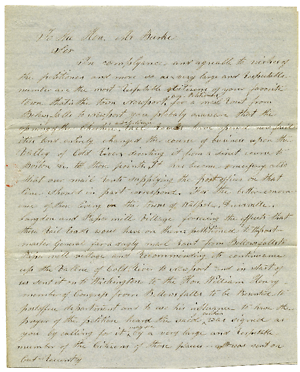 for the petitionersHon. E BurkAcworth February 17th 1849P.S. Messrs Huntington and Armstrong are runing a four horse stage each on That ^said^ Rout three times a week and will be at Washing to make bids for caring the mail should the Rout be established