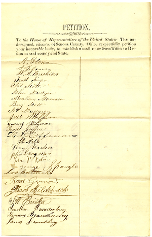 Petitions from citizens of Seneca Co Ohio praying for a mail Route from Tiffin to