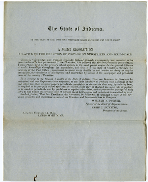 A joint Resolution relative to reduction of postage on news papers & periodicals