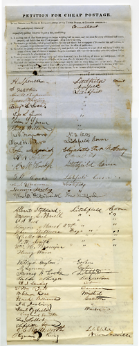 Petition of H. Spencer and 34 other citizens of Litchfield County Conn praying for a reduction of postage [an?] amendment of the laws on the subject