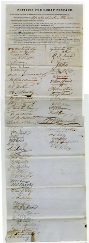 3. To reduce the postage on letters and newspapers by mail packets and steamers, to