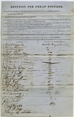 A petition from sundry citizens of Wayne Co ^Ohio^ praying the passage of a law reducing the rates of postage.